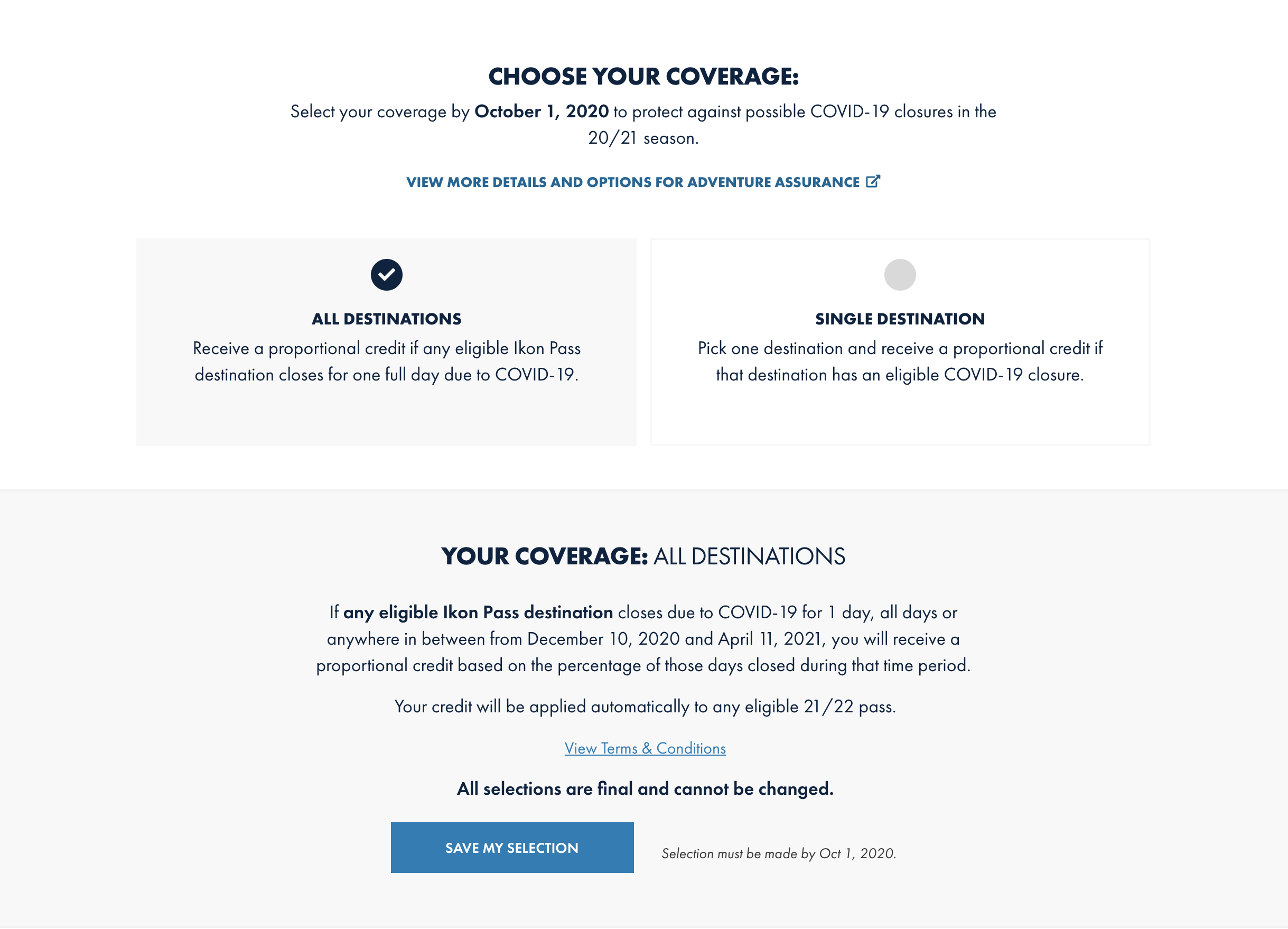 Discover your favorite ikon pass destinations, adventures and trips. Ikon also offers local passes for some resorts, see details here. Click the 'view coverage' link in the adventure assurance banner, then select 'defer this pass' and confirm you want to defer. Download the ikon pass app to maximize your time on the mountain. Fly to the slopes take a flight. Epic also allows passholders to choose insurance that covers a "specific week" rather than the entire season, but the coverage still doesn't take effect unless your resort closes for 3 or more days during the specified time period... Unlock unlimited possibilities and build your ideal mountain adventure.